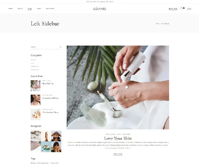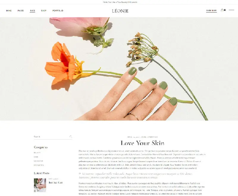 Choose one of the many blog single options Léonie offers & make engaging posts for readers.
