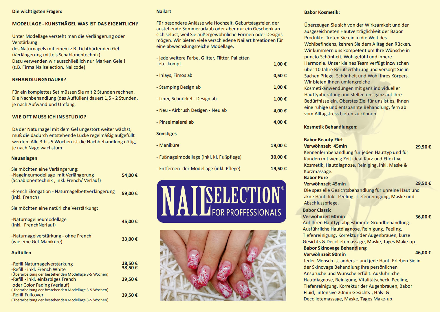 Flyer zu unserem Nagel- und Kosmetikstudio